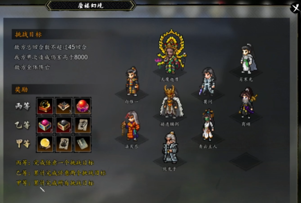 面对不同层数的敌人时,需采取针对性策略,部分层数会遭遇特性鲜明的强敌,例如欧阳衡的天外飞仙招式伤害极强,需优先集中火力将其击杀,殷无矜的断筋技能会干扰全场行动,也应优先处理以消除控制威胁,扫清这些关键目标后,再逐步解决剩余敌人可大幅降低战斗压力,前期可借助反伤效果与敌人周旋,减少主动攻击带来的风险,后期面对高战力敌人围殴时,若缺乏达摩剑法等续航武学,需通过灵活走位拉扯敌人阵型,利用地形障碍物阻挡攻击,结合技能冷却节奏分批击破敌人。