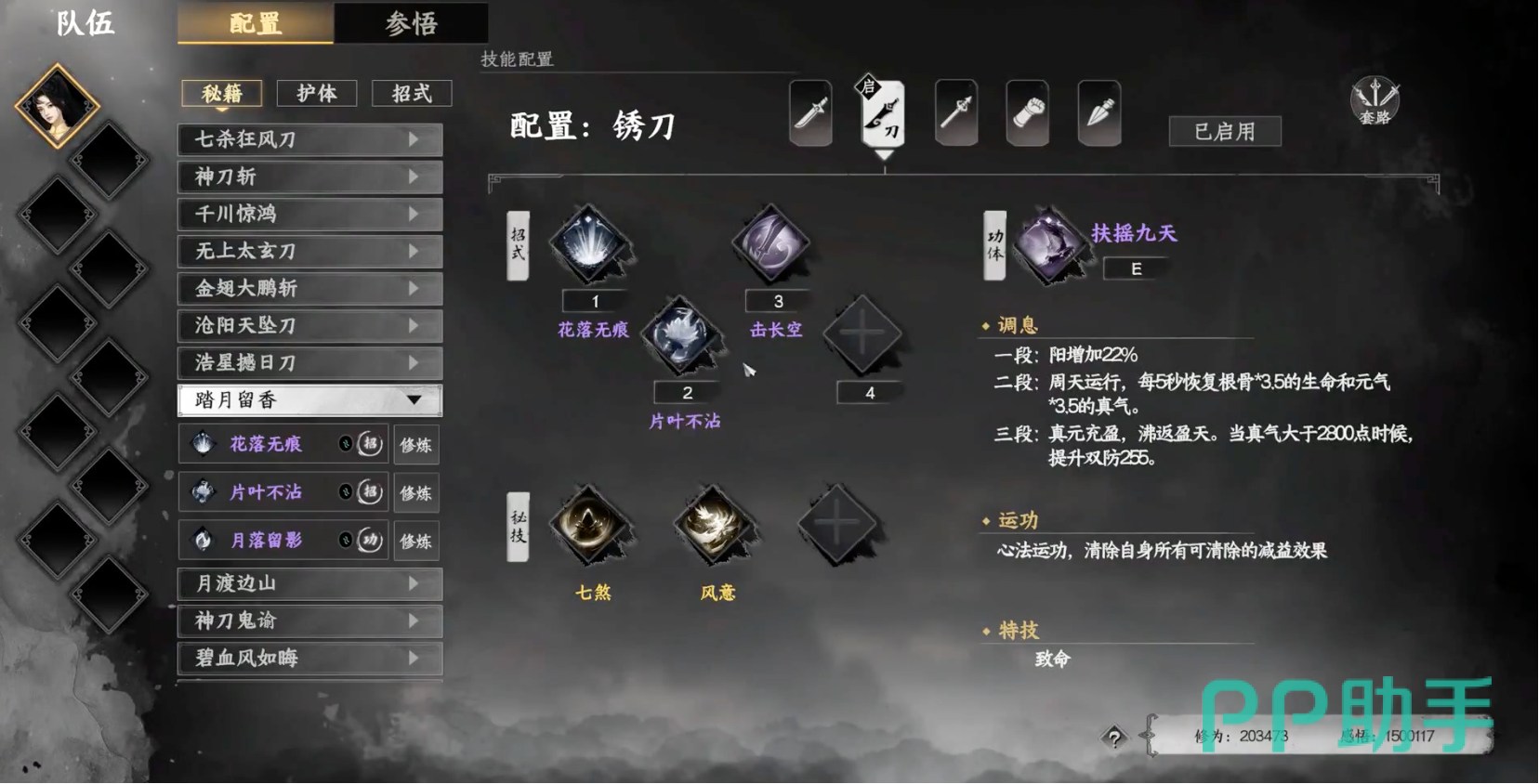 踏月留香是柔系刀法中的闪避流代表,以高闪避和生存能力为核心。其一技能“花落无痕”可以在生成护盾后对敌人造成伤害;二技能“片叶不沾”则提高50%的闪避率,使玩家能够有效躲避敌人的攻击。内功“月落留影”每次受到攻击时生成护盾,并提升伤害,使得玩家在生存的同时还能提高输出。