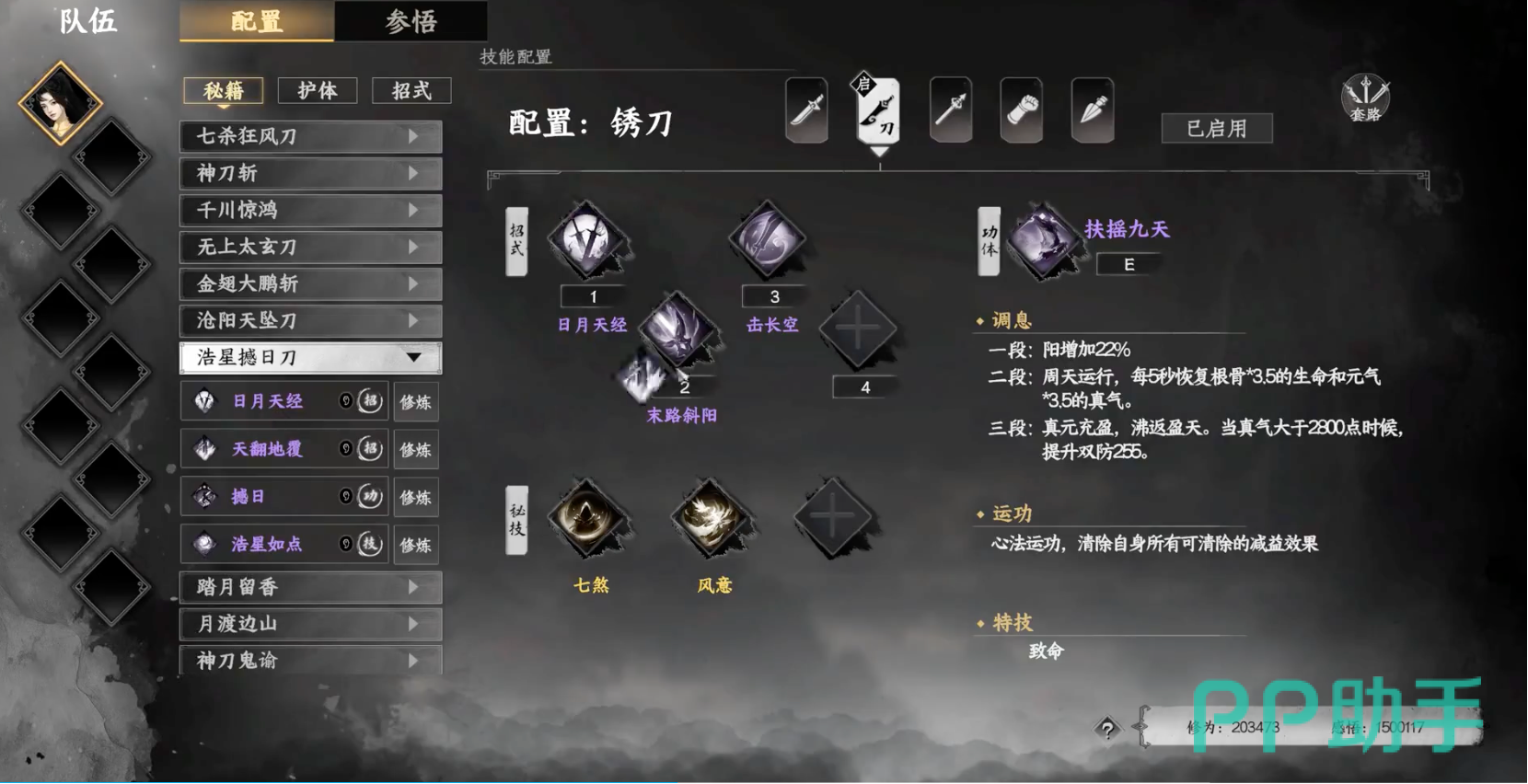 浩星撼日刀是魔刀流的核心武学,凭借其高爆发、高增伤的特性,成为了当前版本最强的刀法之一。其一技能“日月天经”附带自损血量的伤害,在与掉血的武学配合下,能够打出惊人的爆发;二技能“天翻地覆”减少敌方伤害25%,适合在高难度BOSS战中使用。内功“撼日”则能够增加伤害并提供增伤叠加,每一刀后都会增幅输出,特别适合多段数的招式。被动“浩星如点”无视防御,使得即使面对高防御敌人也能造成不俗伤害。