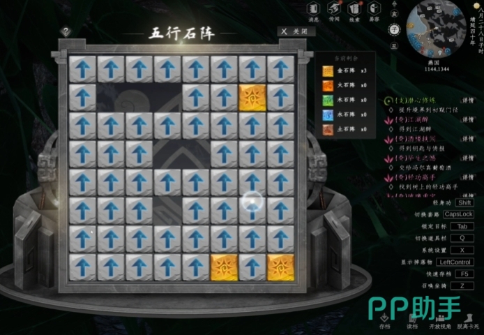 五行石阵的构成以带有不同颜色标识的石块为核心元素,解谜逻辑围绕颜色归位与消除展开,阵中存在部分带有箭头标志的石块,这类石块是解谜操作的主要对象,玩家通过点击带有箭头的石块,可借助方向控制将其移动至同样带有箭头的目标位置,当相同颜色的石块通过移动成功汇聚到一处时,便会触发消除机制石块随之消失,玩家需要按照一定的顺序,有条不紊地规划每一步移动路径,逐步消除阵中的所有带色石块,直至完成整个石阵的破解。