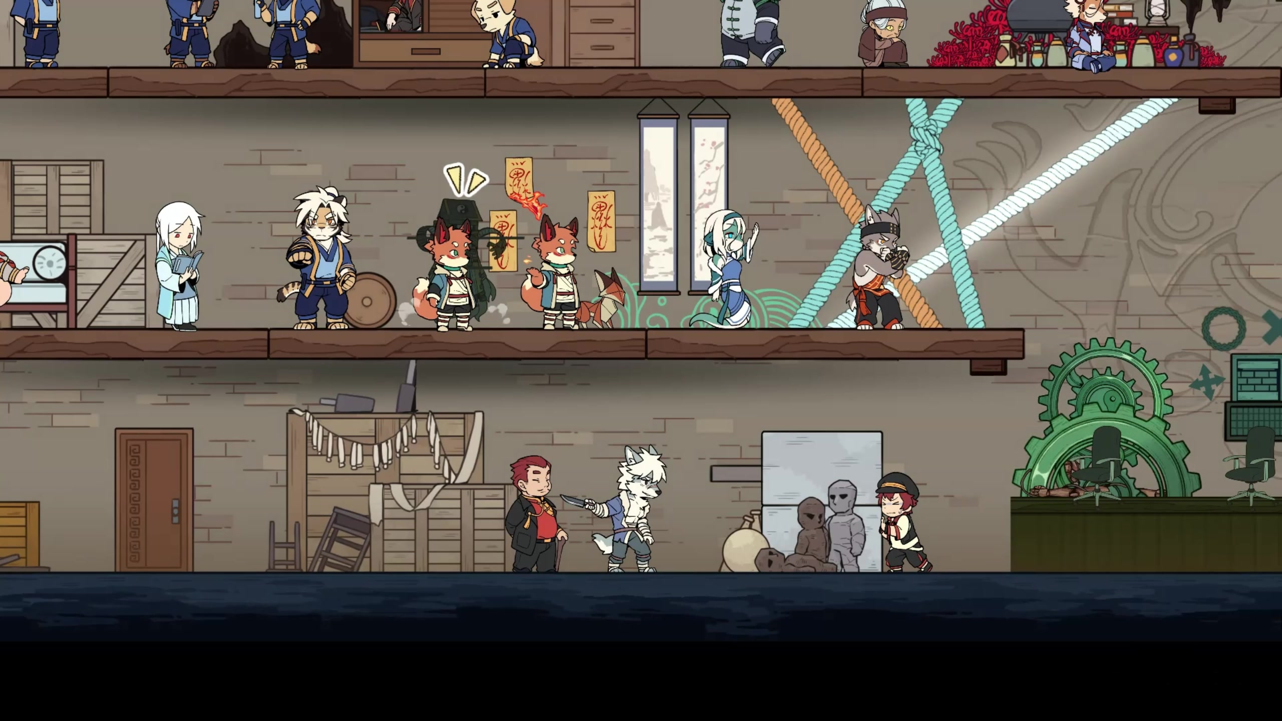 游戏将福瑞题材与国风美术大胆嫁接:毛绒的兽耳角色在飞檐斗拱间穿梭,水墨晕染的光影为齿轮都市镀上一层温柔滤镜。尽管没有炫酷战斗,但恰到好处的背景音乐与场景氛围叠加,让解谜的沉浸感层层递进。