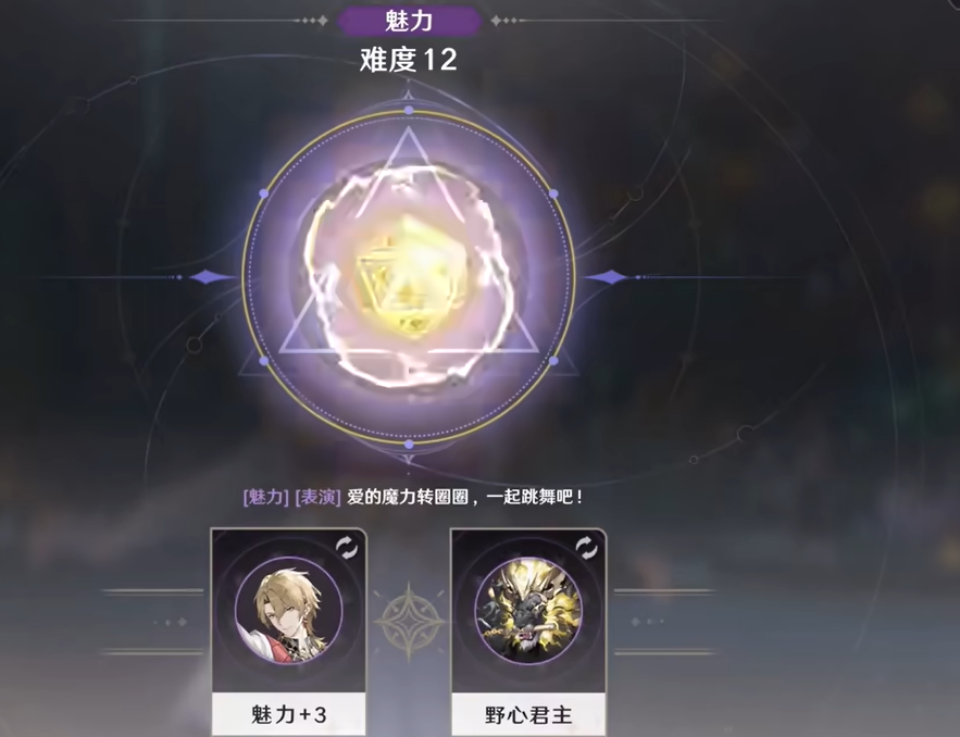 森林邂逅事件中,玩家将会遇到从天而降的神秘少女,当面对扑面而来的任人物时,玩家可以选择使用“敏捷”成功闪避,也可以使用“魅力”和他一起共舞。通过投掷骰子的方式将会拥有不一样的故事发展,当骰子的点数未达到要求时将会激怒神殿之主,玩家将会被强制转向战斗的场景,一个多个角色来完成挑战任务。