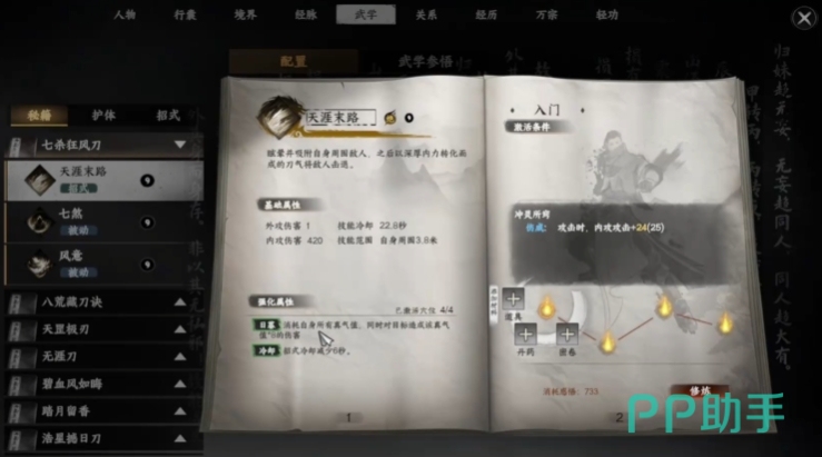 实用精品刀法则是新手玩家入门和前期过渡的重要武学,八荒藏刀决作为刀法流派的入门武学,以内功伤害为主,拥有多个实用招式与秘技,其中藏刀式能为自身附加防御反击状态,让新手在战斗中更易生存,玩家在初始阶段选择刀法流派后可自动习得,也能在云鹤村NPC天机老头购买获得,天罡极刃是前期另一款实用的基础刀法,以外攻伤害为核心,招式极罡刃和天罡真式可对身前扇形区域敌人造成伤害,在功体和秘技加持下战力还能进一步提升,其秘籍可通过击杀龙蛇寨山贼头目有概率掉落。