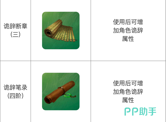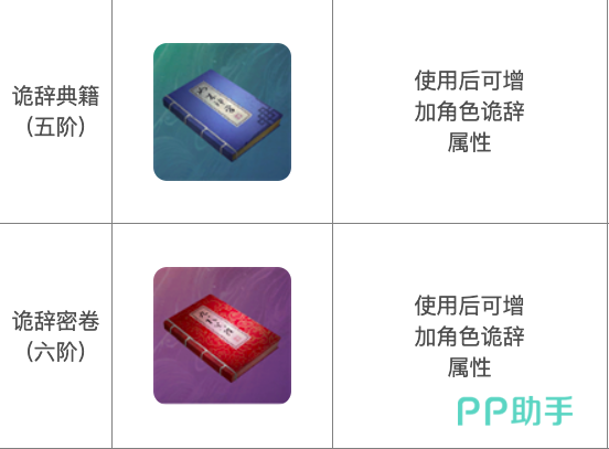 诡辞典籍,为五阶武学宝典,在使用后可增加8点诡辞,获取途径同上。