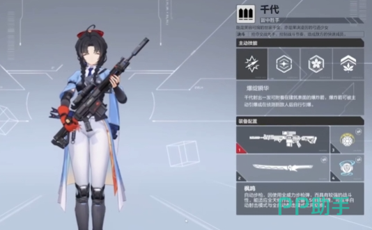 被动技能方面会持续恢复专注度,对敌人造成伤害之后会消耗专注值,但是在一定时间内能够强化自身输出,能够在射击时提高准确度,延长作战的时间。她还有着非常厉害的终极技能,在团体作战时,可以轻松透视队友附近出现的各方面敌人,蓄力后可拥有穿透墙体的爆炸箭,尽管长距离的发射,也能够命中敌人,并在短暂延时后爆炸,对射击点周围的伤害性也是非常高的。千代独特的战术技能“滞影贯云”在向目标敌人发射的过程中将会对经过的所有敌人造成更高强度的伤害和减速效果,从而达到事半功倍的作战效果,在团队作战方面,有效的利用千代技能是可以扭转战局的。