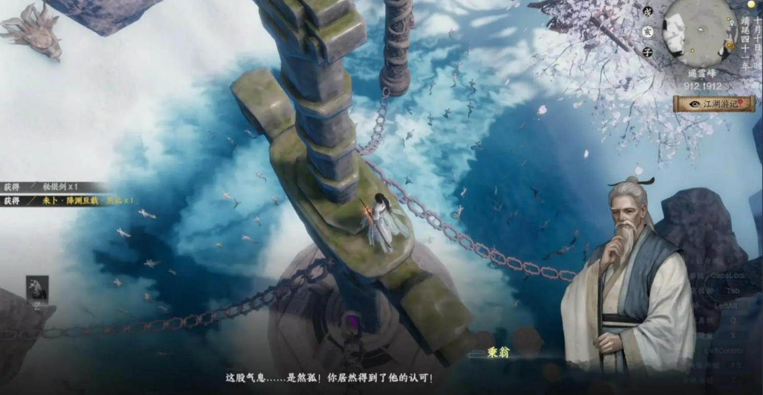 继续在遥雪峰探索,你还会遇到一些有趣的NPC。在山顶的某个地点,你会碰到一位怪人(坐标:786.2011)。与他对话后,你将解锁新的剧情。虽然他看起来有些怪异,但他与山顶的江湖密事密切相关。之后,在遥雪峰的(837.2030)位置,你将遇到程继武,他请求你护送他到祈灵川。在护送过程中,你将获得枕浪丹以及轻功值的提升。这项任务不仅有助于你提升自身的能力,还能解锁后续的剧情。