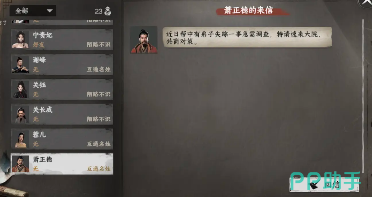 当你的门派好感度达到25,恭喜你,晋升为内门弟子的机会来了。这时候,你会收到蓉儿的飞鸽传书,带着晋升的任务和指引。完成任务后,成功晋升为内门弟子,意味着你已经在丐帮中站稳了脚跟,开始接触更多的秘密和机遇。