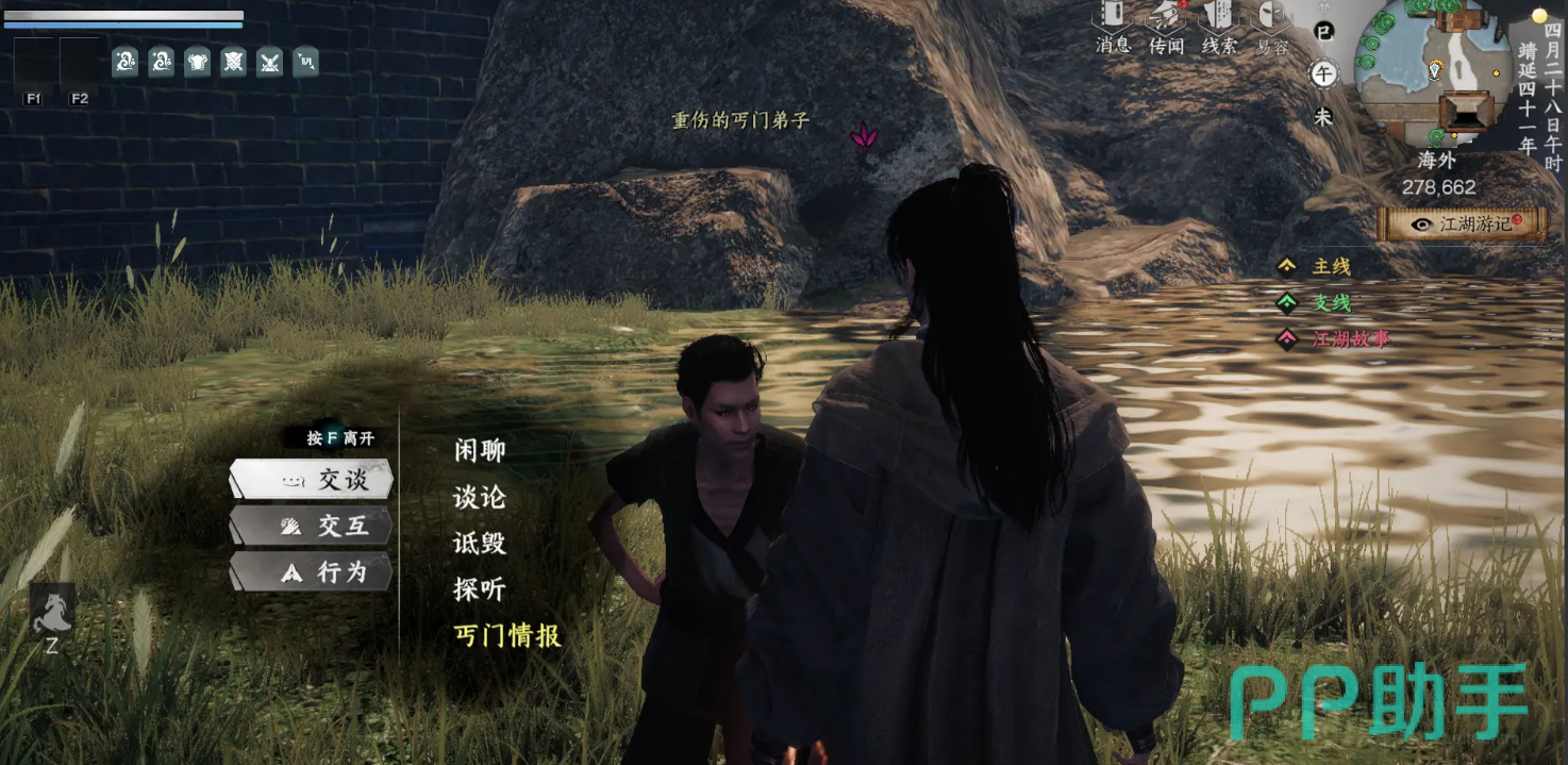 想要加入丐帮,首先得找到丐帮的重伤弟子。这一位丐帮弟子坐标大致在278.662的位置,他是你进入丐帮的第一步。与他交谈后,你会获得“丐门入门”任务,跟着任务的指引走,完成相关内容,你就能顺利加入丐帮了。