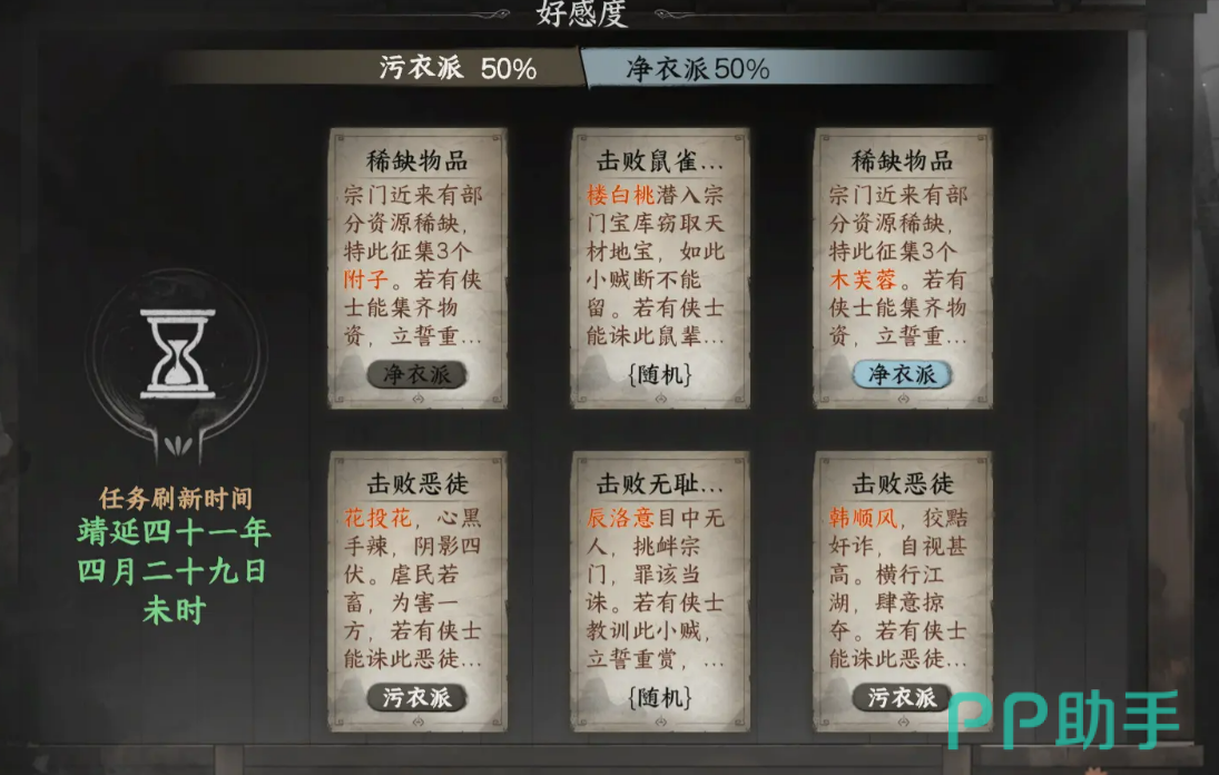 成功加入后,接下来就可以接受丐帮的各类悬赏任务了。与其他门派不同,丐帮的悬赏任务有点特别,分为了“净衣派”和“污衣派”。每完成一项任务,你的好感度会增加。完成多个任务后,好感度逐步提升,这时候你会发现自己与丐帮之间的关系越来越亲密了,甚至有可能解锁兑换派系道具的机会,让你得到更加独特的奖励。
