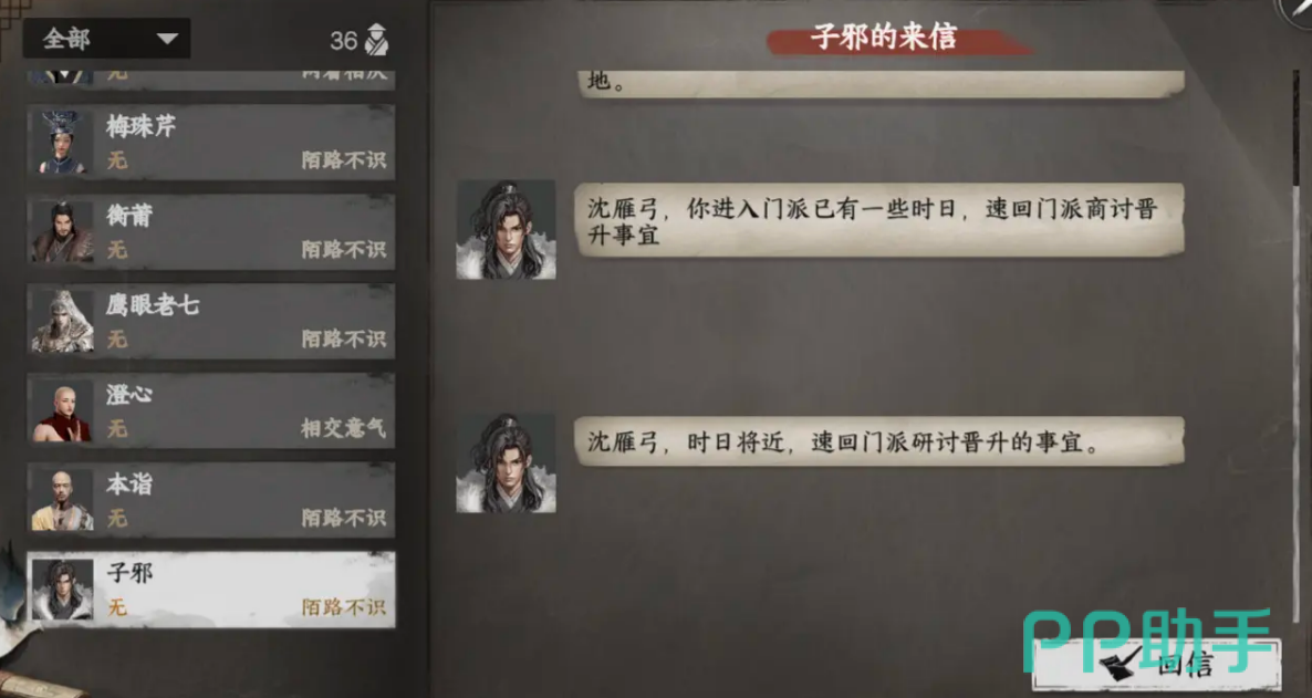 重天门则有更为严格的要求。该门派不对所有人开放,而是只对道德值低于50的角色发出邀请。当玩家满足条件后,会自动收到来自子邪的飞鸽传书,从而开启重天门的支线剧情。入门之后,还需完成与曲凰相关的任务,随着门派贡献的提升,最终甚至可以参与掌门之争,走上夺权之路。