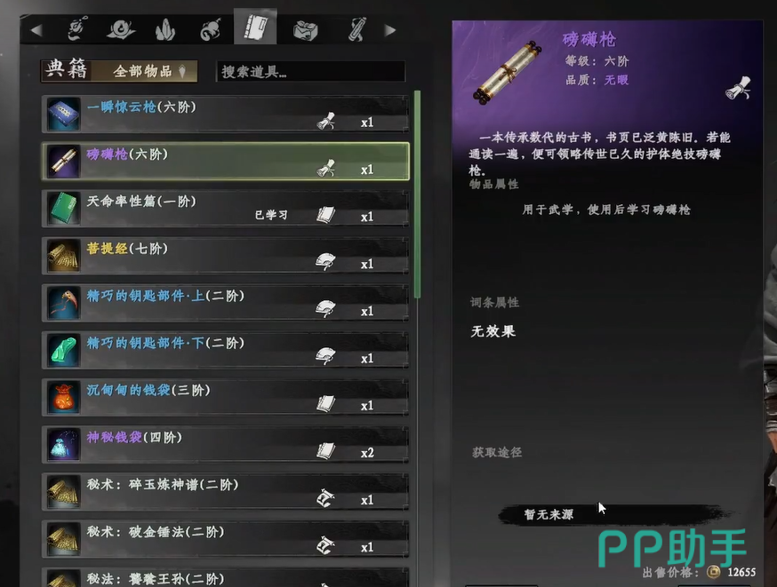 最后还有一个环节,那就是找到姒丹的位置。他并不在城内,所以玩家需要前往城外的码头(坐标:桐栌 1011, 899)。和姒丹聊的过程中,大家还会得到两本秘籍,帮助玩家们进一步提升,一本是一瞬惊云枪,另一本则是磅礴枪。