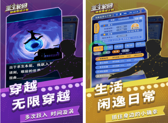玩家摇身一变将成为一个穿越者,需要去阻止外星人毁灭地球。外星人入侵地球的设定还是比较有创意性的,并且还会拥有一个无限制穿越的元素。玩家可以不断的轮回,并且还可以完成战斗或者是工作等一系列活动。为了阻止未来降临的外星人去毁灭整个地球而不断的努力,在每一次轮回时都会拥有一个新的体验。作为一款竖屏文字类的游戏,里面就会有科幻小说一样的剧情,可以让大家感受到紧张刺激。