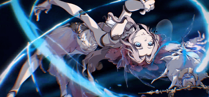 战技“海精灵祈愿”,战斗开始后,选取上阵在自身左侧和右侧一格的角色,为他们施加一定时间的祝福;且她还会对拥有祝福的角色每秒附加一定的治疗效果,祝福会自动转移给当前生命百分比低于一定值的友方角色,或是低于自身并且不带有辅助的队友。