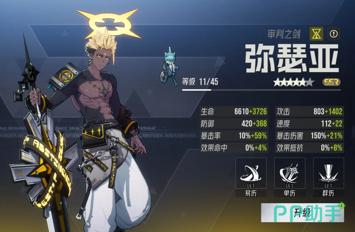 弥瑟亚靠着无视防御、无敌等技能机制,和不错的基础面板在输出中是当之无愧的T0,他的普攻会对单个敌人形成2段130%的输出,并有25%的几率附加上2回合易伤,成功击败敌人后会给自身附加1回合无敌,若已经有无敌会延长1回合的持续时间,他的“二重审判”会对目标进行3次攻击,并让最后的攻击附加目标已损失生命的100%伤害,他的终结技会对全部敌人造成2段180%伤害,本次伤害会无视目标70%的被动和防御,并给自己附加上1回合的无敌。