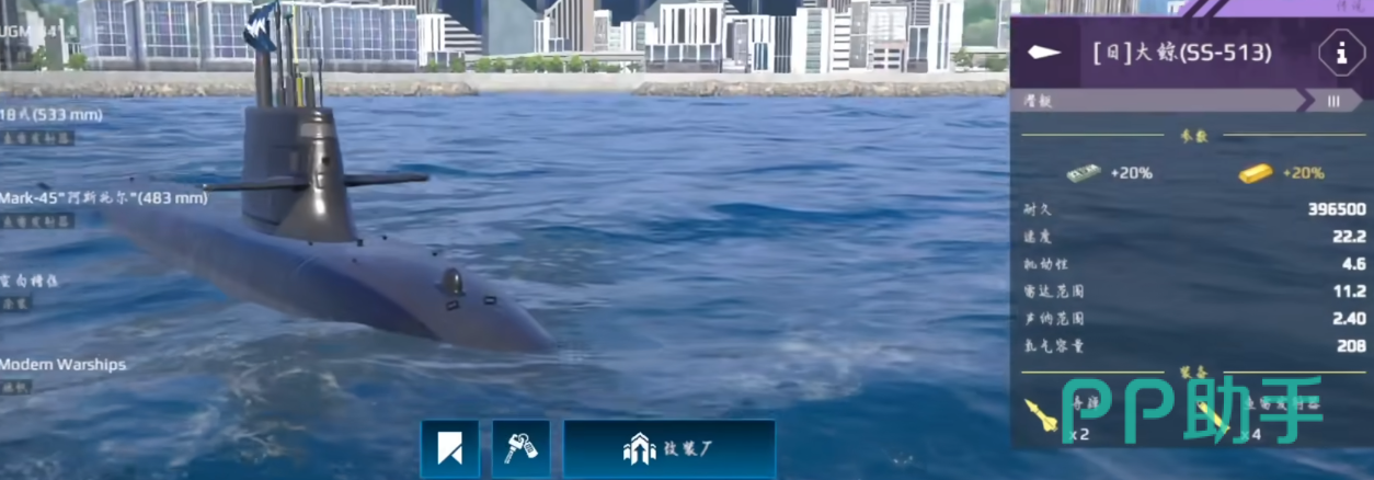 作为三级潜艇中的代表,大鲸在本体属性和实战能力上皆有出色表现。小巧的体型令其在复杂地形中游刃有余,而21节的极速和灵活转向则使其拥有极高的机动性,208的氧气值也保证了大鲸可以长时间在水下行动,为战术潜行创造了良好基础。在武器系统上,大鲸配备了可潜射的鱼叉和高性能的18式鱼雷,单轮高达88400的输出搭配七秒CD,使其能够频繁进行致命打击。18式鱼雷则更进一步,拥有高DP、无视诱饵、速度快的特性,在面对敌方潜艇时更是占据压倒性优势。大鲸擅长悄无声息地逼近敌舰,并在敌人尚未察觉时发动雷击,完成“潜行猎杀”。