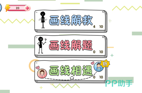 这款以划线策略为主题的烧脑手游,采用极简的像素风打造了多个场景,让玩家享受以智慧为核心的闯关乐趣。系统设计了可爱的火柴人作为游戏主角,玩家可以在多个场景里利用连线方式进行解救或者答题,各种奇妙的障碍物和谜语增加了不小难度。本游戏每个关卡都有趣味的清新感觉,既突出烧脑策略,也获取答题后的美妙心情。