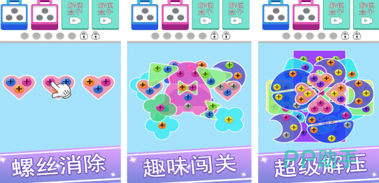 色彩缤纷的画面以及独特的游戏玩法,还设计了丰富多样化的场景设计,在开局后每一个关卡中都会呈现出独具特色的挑战。将会看到错综复杂的螺丝,而玩家要按照正确的顺序将这些螺丝分别拆开,将每个关卡中所有的木板全部取下之后,就可以完成闯关。看似操作方式特别简单,但是却必须要利用自己的策略,才能轻松应对各种挑战。