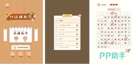 在到处都是汉字的文化当中,这里涵盖了各种各样的网络爆梗以及小作文等等,看似特别简单的操作方式,但是却比较考验玩家对于知识的掌握程度,这里涵盖了5种不同的模式,比如有找错别字以及诗词文化等等。每一个内容当中都呈现出了多样化的题目,比如在找错别字这一种模式当中就涵盖了40多篇小作文,每一篇作文当中都会涵盖不同的错别字,您可以在玩的过程当中学到更多的知识。