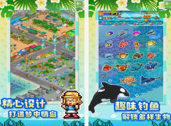 采用像素的风格,为大家所设置,可以享受钓鱼模式,以及养鱼模式这两种玩法的手游,主要就是会让你置身于浓郁的大自然环境当中。化身为可爱的角色以后,通过钓鱼倾听大自然的声音,仿佛置身于其中。也有超多的荒地,利用不断的改变以后,可以成为名胜古迹。利用吸引更多的人气,成为热门的观光地,玩法内容属于比较丰富的,需要利用各种方法,来获得更高的经济收入。