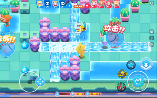 一款同样基于经典炸弹人玩法的休闲竞技类手游,玩家通过放置炸弹击败对手、炸毁障碍物并收集道具来获取积分。玩法上包含多人实时对战和排位系统,支持好友组队和语音聊天,游戏提供6个初始角色,每个角色拥有不同技能特性,玩家可通过击败敌人或拾取道具强化能力。