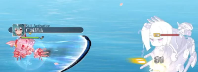 从技能的表现来看,蕾妮雅拥有一系列与“斩击”相关的攻击技能。这一技能能否消弹效果目前尚不明确,但如果能消耗敌方弹药,绝对是一个大大加分的地方。同时,她还有类似兽爪的撕裂攻击,配合她亚人种族的兽耳人设定,这一技能的视觉效果和设定感显得尤为契合。攻击结束后,接下来是全屏范围的“星光”打击。那些从海面升起的白色星光,不仅仅是视觉的冲击,更是她战斗力的体现。单从清理杂兵的角度来看,蕾妮雅的输出非常强力,特别是在面对低难度海域时,她的清场效率堪称一流。