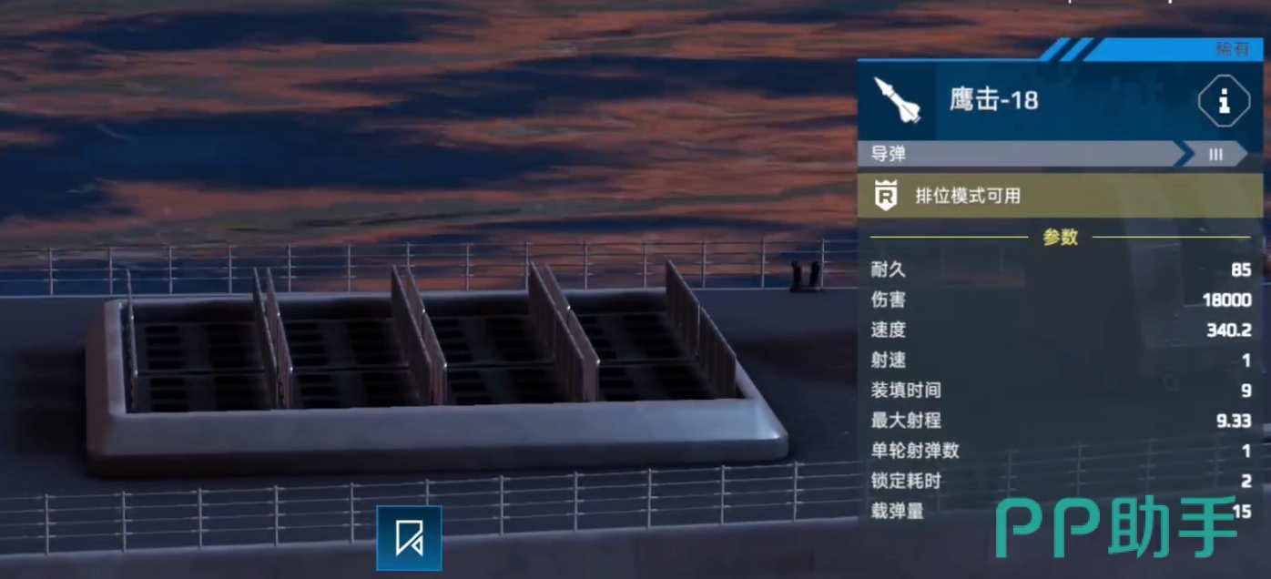055需要进行配装的部位主要有5个,分别为1号导弹巢、2号导弹巢、主炮、火箭弹、防空、鱼雷和海上直升机。在15级时,1、2号导弹巢都可使用鹰击18,该装备的优势在于原装自带,且在各种环境下表现都很优异。当然,也可给1号导弹巢装备上具有不错突防能力的微波导弹,2号导弹巢则继续装备鹰击18。20级时可用东风17,在远程时会令055有着不错的火力优势,也可在1号导弹巢使用能力较为全面的鹰击12A。25级后,1号导弹巢可以换上风暴阴影,2号导弹巢用标准6来进行防空。