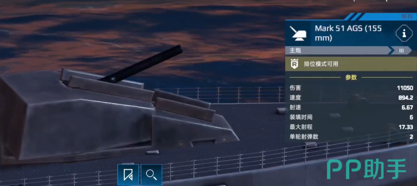 主炮在15级时可用轨道炮155,资金不够买下它时也可先用原装炮顶着,一旦资金够时最好立刻买下并为055更换,该装备可用到25级后再去更换MONARC155。而在火箭弹的选择上,初始自带的火箭弹就非常不错,可一直用到20级。到了20级后,可换上726-4A这款有着平民之神称号的火箭弹,它汇聚了伤害高、高精度、能反潜三大特点,实战中相当好用,要是对近战有要求,a22也是很合适的选择。25级后,可继续用726-4A,也可换阿斯洛克C。