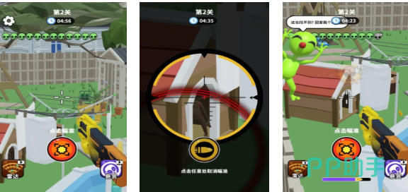 这是款具备着狙击射击元素的第一视角外星人游戏,你将化身外星人狩猎专家使用枪械击杀外星人,地图设定3D立体提供了代入感和真实性,玩家要灵活操控手里的武器对抗众多外星生物,三维的外星人建模看上去生动滑稽,刺激的射击手感与卡通的画面形成鲜明对比,列位外星人游戏粉丝试着狩猎这些可爱生物吧。