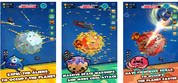 驱逐外星人是款具备着科幻元素背景的竖屏塔防游戏,拥有宏观的视角和外星人主题的对抗元素,你将放置各种科幻化武器对外星人的星球进行攻击,画面采用卡通呆萌的风格且整体节奏很快,优秀的操作性质与互动理念给人不俗的代入感,各种形态的外星怪物等待着玩家对抗、驱逐,形形色色的防御战斗道具也令大家眼花缭乱。