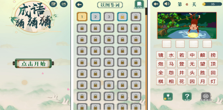 在看圖猜成語游戏中,通过生动有趣的图片引导玩家猜测对应的成语,游戏的核心在于图片解谜,游戏精心设计了大量形象生动的图片,每一张图片都暗藏着一个成语线索,玩家需要仔细观察图片的每一处细节,展开联想与推理,猜出正确的成语,关卡设置上难度循序渐进,从简单直观、容易猜测的图片,逐渐过渡到富有创意、需要深度思考的复杂图片,不断挑战玩家的观察力。