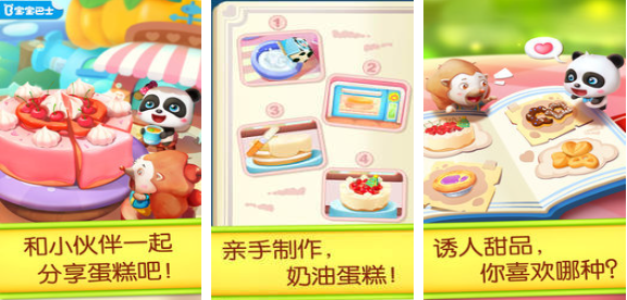 游戏会专门为2~8岁的小朋友设计主要是以宝宝制作甜品作为核心,内容丰富并且步骤清晰。可以去培养小孩子的动手能力以及制作能力。每一个模式下面都会有甜点制作的场景,例如小熊饼干,甜甜圈,还有纸杯蛋糕。除此之外,大家还可以看到各种不一样的甜品制作工具,可以让玩家享受美食制作的趣味性。除了经营甜品店之外,游戏还会拥有趣味性的挑战以及丰富的任务,玩家可以去参加比赛,展现个人的能力。