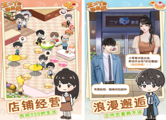 游戏会有卡通漫画系风格,具备细腻精美的画面,可以呈现出童话一般的景象。让玩家仿佛是置身于卡通小镇中,然后去经营一家甜品店。在游戏中玩家就可以招募员工,然后根据员工的技能可以给每一个甜品店去积累人才,最终就可以有效实现自动经营。在游戏里面还会有聊天对话的玩法,玩家可以选择找到让自己心动的人,在每一次对话时都会直接影响到后续的发展,会增加游戏的趣味性和故事性。
