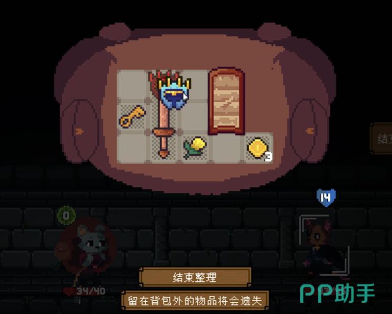 防具的摆放位置至关重要,头盔必须放在背包最顶层才能生效,否则无法提供格挡。“带刺头盔”能每回合叠加4点刺甲,但需注意若角色不在最上行则失效。胸甲类推荐“忍者服装”,可提升闪避并移除格挡限制,适合高机动流派。盾牌方面,“大力神之盾”能联动周围盾牌增强防御,而“猛击盾”虽减少50%格挡但提供高额反击伤害,适合爆发型玩法。