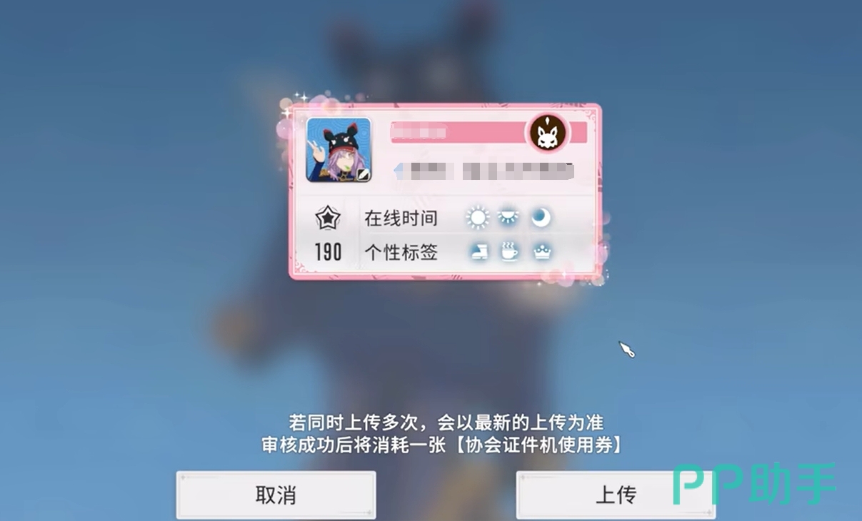 要是玩家之前已经将空白名片和头像换掉,也可直接去协会证件机那拍照,按上述流程提交审核来完成更换。如果在名片和头像审核时间内,玩家若是再次上传新的名片和头像,则最后审核完毕后,只会为玩家更新最近上传的内容,之前所上传的内容都不会显示。这个设定可让各位在拍摄了更满意的新头像后快速替换掉原先所上传的内容,无需等头像审核后再拍一次照。