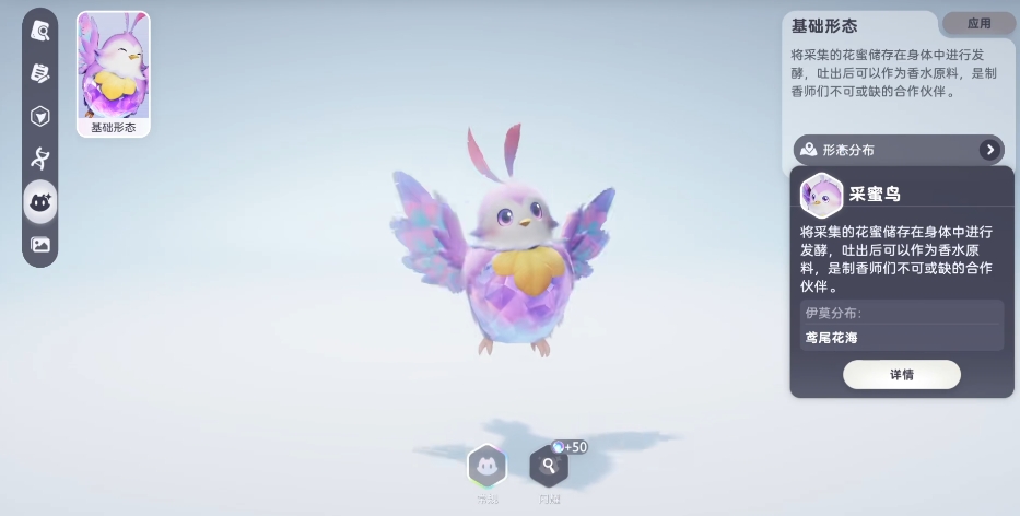 采蜜鸟:同样属性为暗,它有着一项特别的技能,就是把采集到的各种花蜜小心翼翼地储存在自己小小的身体里面,就像一个随身携带的天然蜜罐,然后它会耐心地等待花蜜在里面慢慢发酵,等发酵成熟之后,便会吐出这些经过特殊处理的花蜜,而这些发酵过后的花蜜可是制作高档香水的优质原料,也因此让采蜜鸟在伊莫的世界里也是很多玩家都喜欢的一类宠物。