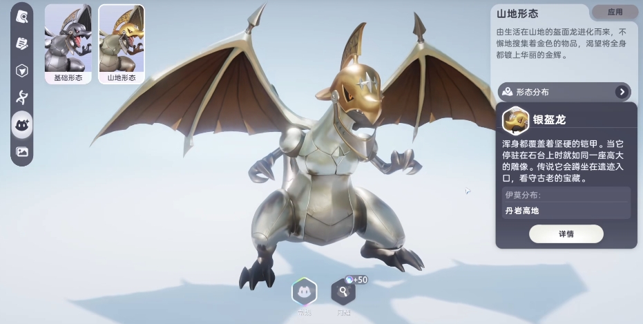 银盔龙:它的全身都被一层坚硬无比的铠甲所覆盖,每一片铠甲都闪烁着冷峻的金属光泽,在古老的传说中,银盔龙常常会蹲坐在神秘遗迹的入口之处,默默地守护着那些承载着古老历史与文化的雕像,所以在解锁了遗迹之后,大家可以在挑战遗迹的时候顺便把这个宠物抓捕成功。