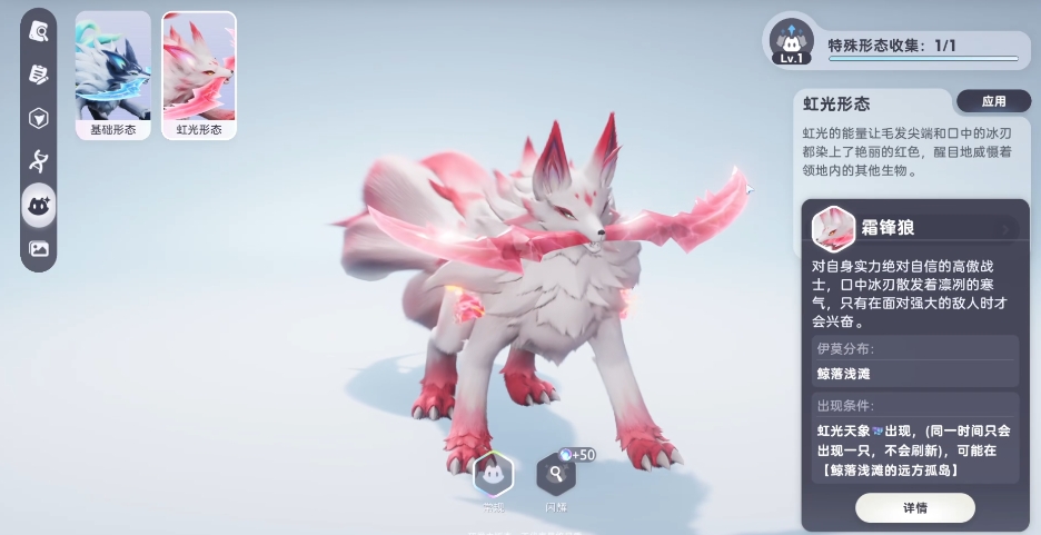 霜锋狼:它的口中时常含着一把冰刃,要是玩家们想要抓到这高傲的霜锋狼,得先解锁支线强者之约,然后跟着任务指引,前往地图上那些标有感叹号的地方,在那里会遇到两头狼,接着触发它们之间的对话,最后再把霜锋狼击败,这样才能顺理成章地把它变成自己的宠物哦。