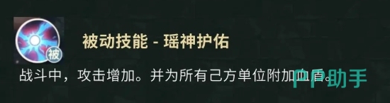 而除了强大的主动技能外,云彩的被动技能同样是不错的,首先是被动技能瑶神护佑,在战斗的氛围中,云彩的攻击会得到提升,与此同时,她还能为所有己方单位附加血盾,这种群体加盾的能力,在战斗中也是一种强大的助力,提升自身攻击的同时,又能为队友提供坚实的保护,这种功能性极强的被动技能,使得云彩在队伍中的地位更加稳固,成为了团队当中很需要的一类队友。