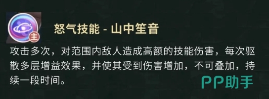 接下来不得不提的是云彩的怒气技能,这个技能叫做山中笙音,当这一技能发动时,云彩可以对范围内的敌人发起多次攻击,每一次攻击都能造成高额的技能伤害,让敌人感受到猛烈的打击,更为关键的是每次攻击还能驱散敌方多层增益效果,并使其受到伤害增加,而且这种效果不可叠加,会持续一段时间,这一技能巧妙地将输出与辅助效果完美结合,既能够对敌方多个目标造成巨大的伤害,又能通过驱散增益效果,有效地克制那些依赖增益效果来提升战斗力的阵容,打乱敌方的战斗节奏。