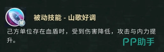 另一个被动技能叫做山歌好调,则进一步体现了云彩对队伍的全面增益作用,当己方单位存在血盾时,受到伤害会降低,同时攻击与内力也会得到提升,以为内主要的效果是体现在增益上面,所以无论是在防御还是进攻,其实都能让团队的能力得到极大的提升,在云彩的加持下,队友们也有了额外的能量提升,所以云彩这一角色在盗墓笔记的游戏世界里,成为了摸金流前期不可或缺的辅助角色,在她的辅助下,队伍能够在战斗中更加游刃有余,应对各种复杂的战斗局面。