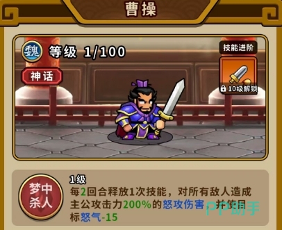 曹操:他的梦中杀人技能每2回合便能在敌人中间起到效果,可以对所有敌人造成主公攻击力200%的怒攻伤害,使目标怒气-15,而我方则能趁着敌人士气低落之际,直接进行反击。