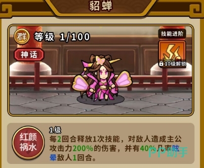 貂蝉:她的红颜祸水技能每2回合便可以使用一次,不仅能造成主公攻击力 200%的可观伤害,更有着 40%的几率如灵动的魅影般使敌人陷入 1回合的眩晕深渊,此时敌人的防御体系将出现破绽,为我方创造绝佳的进攻时机。