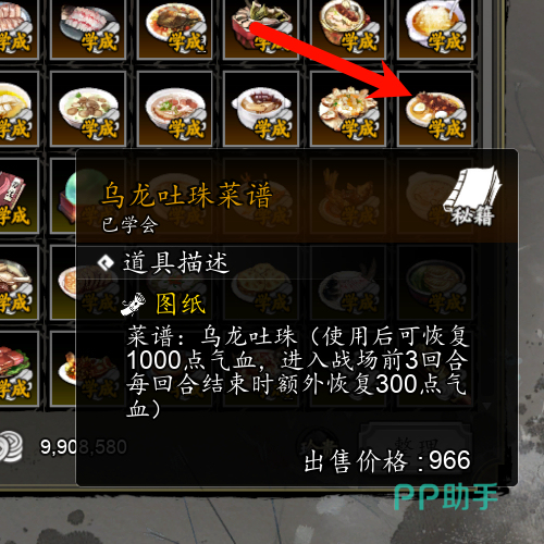 而玩家想要在非战斗情况下回血,则一般就是通过吃一些药品或者菜肴。那么小编就为大家介绍几个比较常见的回血菜肴吧!第一个是乌龙吐珠,这个菜肴除了吃完能马上回复一定血量外,还将在玩家进入战斗后给玩家一个buff,效果是前三回合中,每回合结束时会回复玩家300点血量,可以说对玩家的战斗有很大的帮助。第二个则是参茸二鲜汤,其回复效果比刚刚介绍的乌龙吐珠要好上不少,同时这个菜肴也可以在战斗中给玩家一个buff,前五回合内,每回合给玩家回复800血量。第三个是什锦鹿茸羹,这个菜肴除了能马上回血外,还可以让玩家在进入战斗后携带一个500点的护盾,可以说也是非常适合战斗的一个菜肴了。