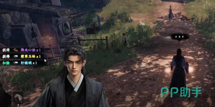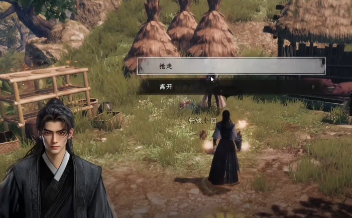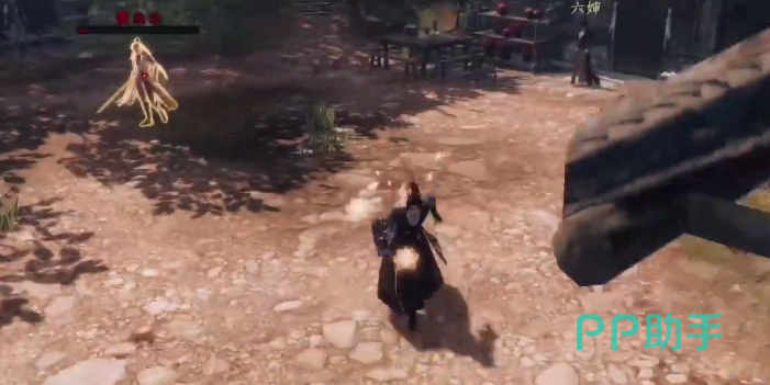 轩辕十四的主人叫霍白白,是这个场景中另一个NPC。玩家抢走轩辕碗后便会触发与她的剧情,在抢走的一瞬间,霍白白便会开始对我们发起攻击。而这时候便需要玩家进入战斗状态了,除了要躲避霍白白的技能外,还需要对其发动进攻才能成功撤退。不过因为这是新手村,所以地图NPC的强度一般,霍白白打在我们身上的伤害不算太高,所以我们有很高的容错率,只需要正常躲避技能同时发动进攻,即可将其拿下。