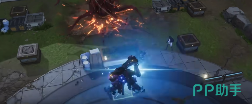 3技能还会对全场的敌人进行标记,标记后角色会进入到某种状态中,似乎是伏击的,从特效不难看出,这个效果是全范围覆盖的,敌人只要有所动作,她就会进行一次攻击,可能会是在队友攻击时,会对被标记的敌人进行追击,次数可能会有所限制,这个全图的效果,基本每个敌人都可以触发一次。