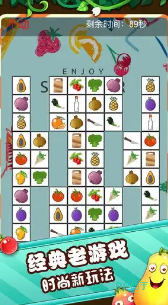 玩家必须在倒计时结束前精准匹配相同蔬果图案并用最优路径连接消除。游戏提供三种强力辅助道具:爆破装置可清除指定区域所有图标,全息扫描仪能自动高亮显示可配对目标,全局重组功能则可重置全部元素位置。卡通渲染风格的界面设计与轻快的配乐相得益彰,既需要玩家进行战术规划锻炼脑力,又能通过趣味互动达到解压效果,特别适合在通勤、午休等零散时段进行沉浸式体验。