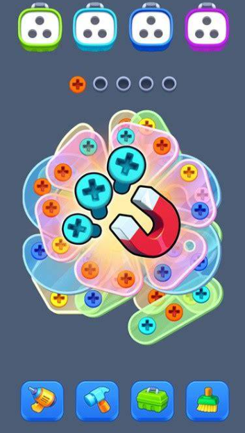游戏通过独特的螺丝旋转机制挑战玩家智力,采用高饱和度色彩搭配带来沉浸式视觉体验。游戏设计了多样化的关卡系统,每个场景都配置了专属解谜规则,玩家需要合理计算操作步数,巧妙运用爆破装置、磁性工具等特殊道具突破障碍,通过精准的空间思维和策略规划完成立体拼图解构任务。