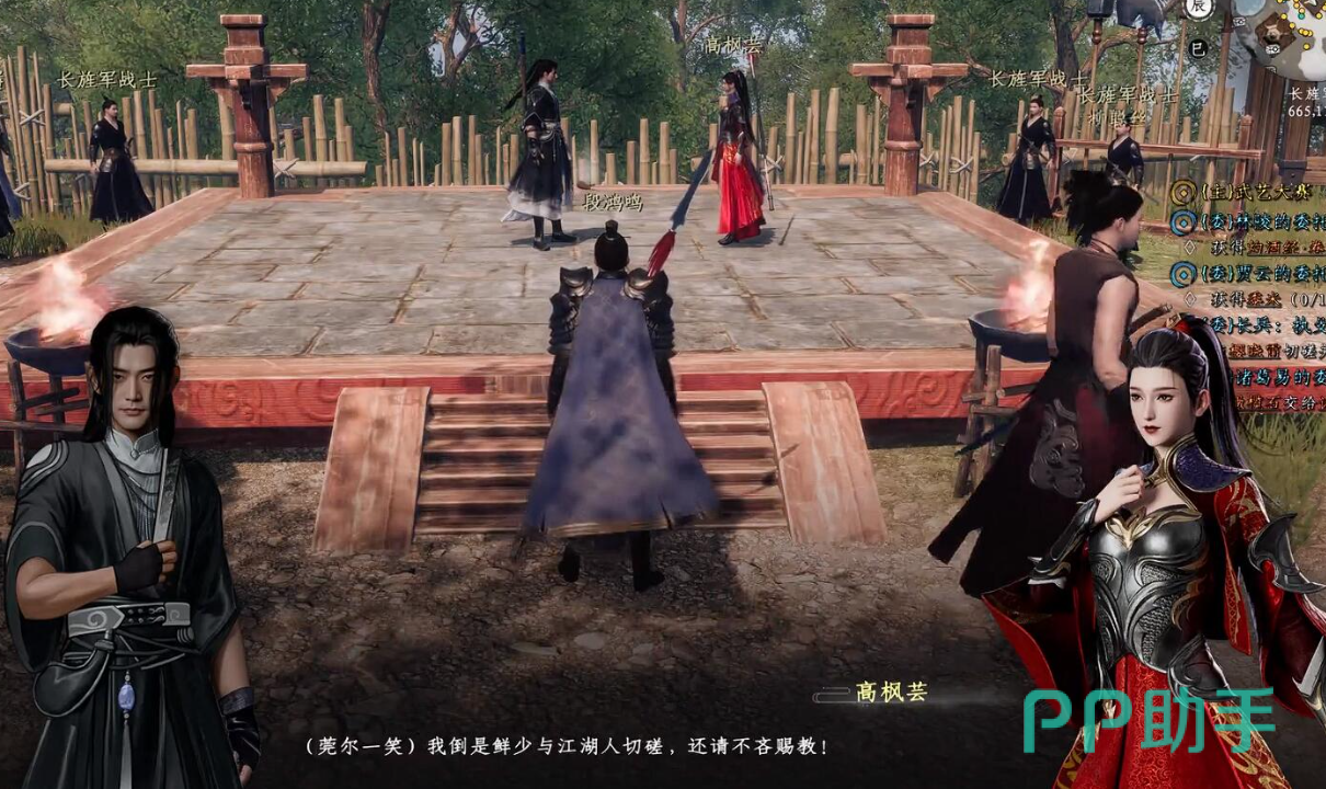 玩家们在去完成收复楚国的任务时,也是需要找到高枫芸的,这个任务中,高枫芸会在淮陵的求缘树下出现,在找到高枫芸以后,玩家需要劝解高枫芸,让她不要做出错误的抉择。
