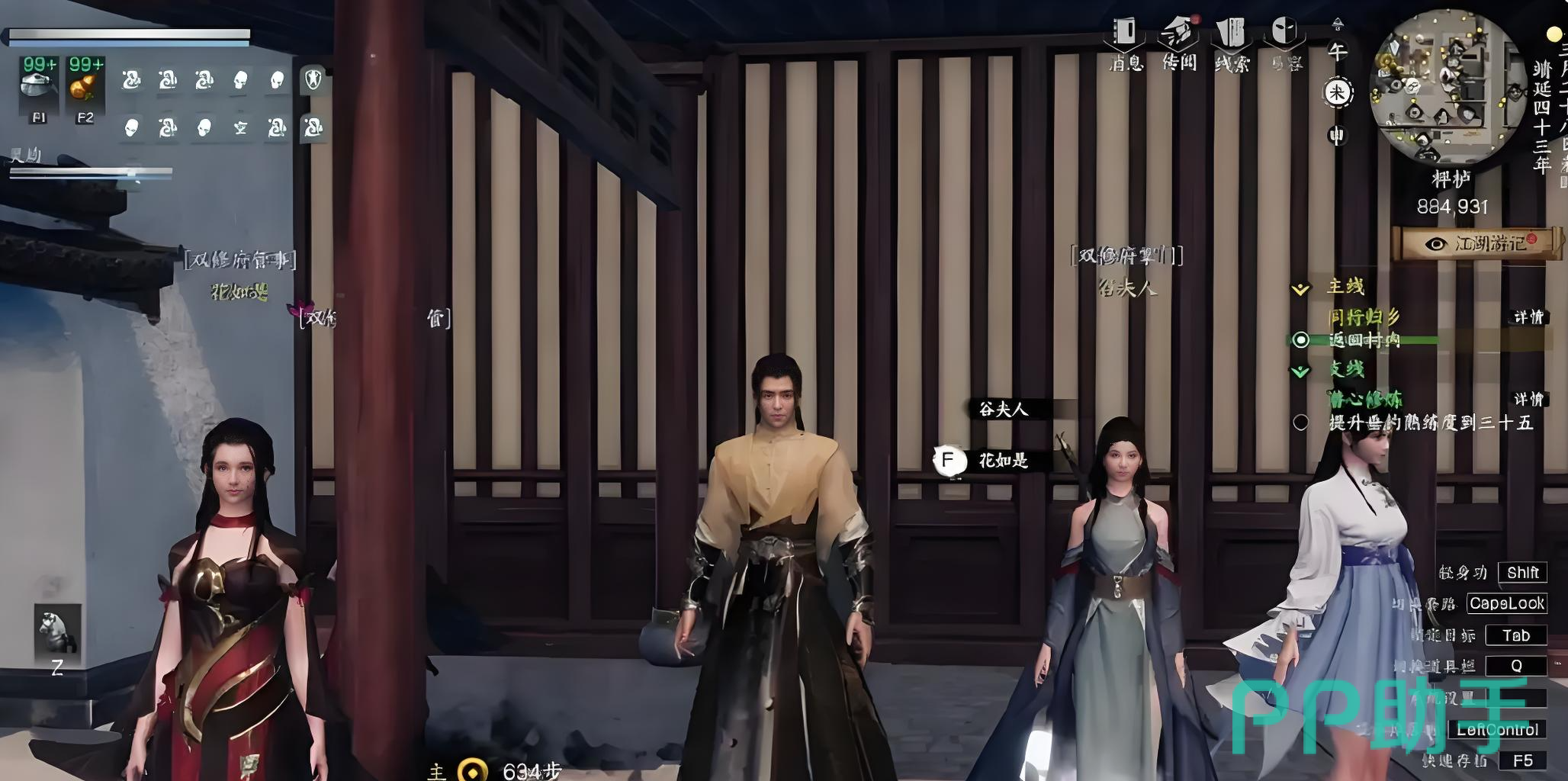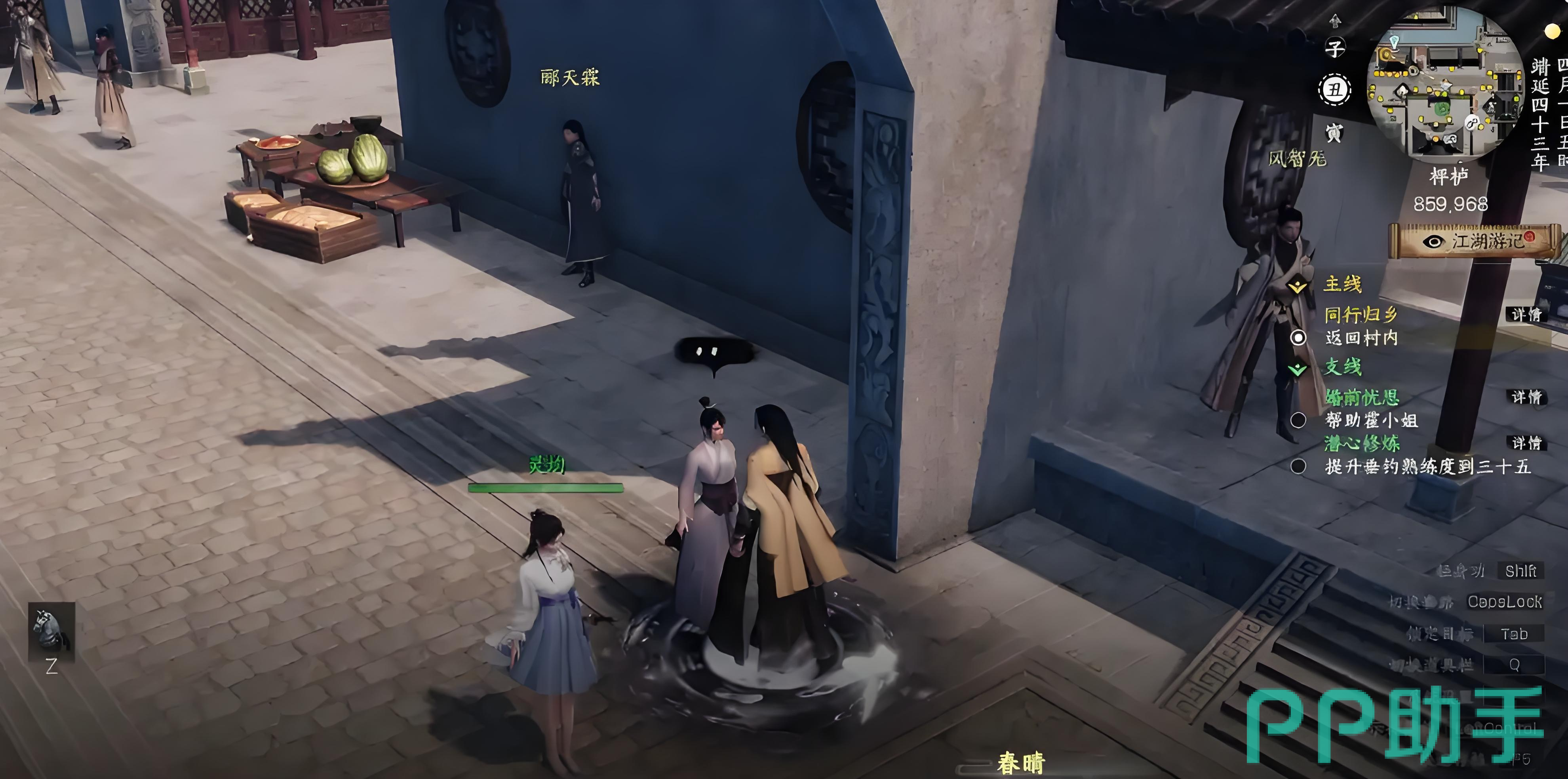 入门信物其实也需要在双修府这里获得,大家只要前往坐标为860,968的位置,在这地方有一个名字为春晴的npc,在她的头顶上我们能看到一个奇遇的标志,点击和她进行对话。
