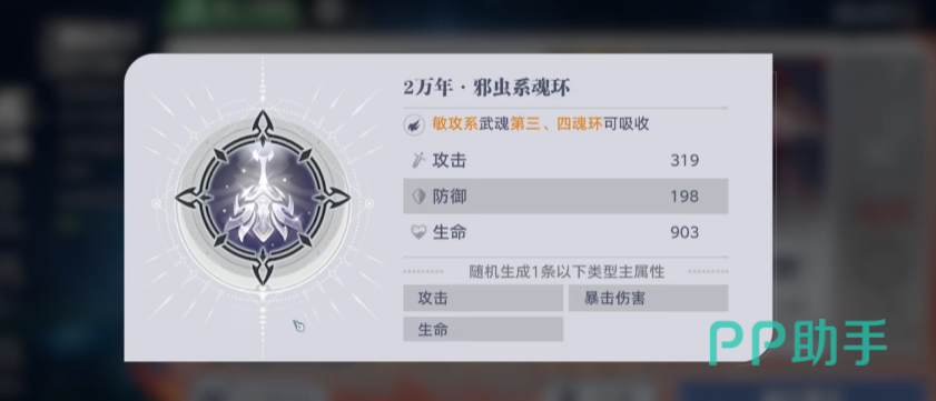 初始可能获取的都是一些百年魂环,也是可进行培养的,魂环能强化与升级,强化需要使用强化石,升级需要同年份的魂环作为原材料,培养后性能可进一步提升。